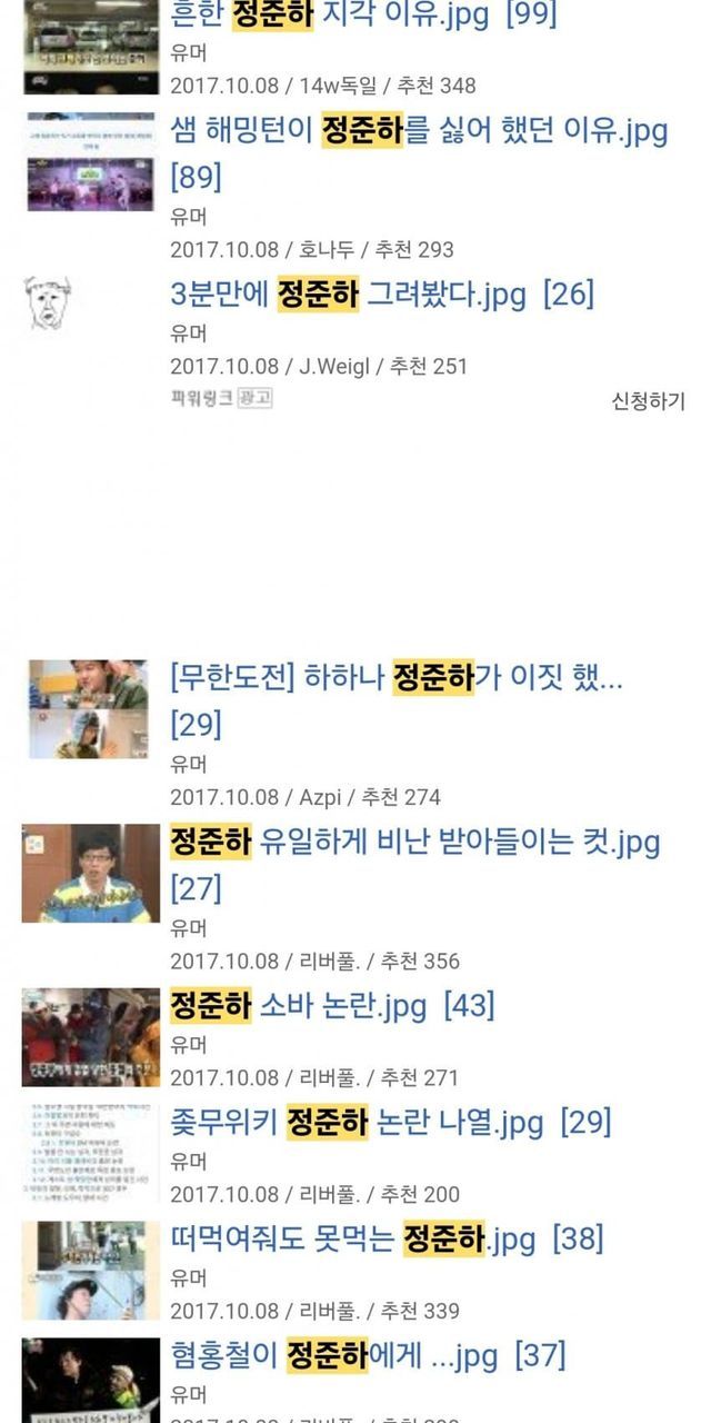 "정준하"를 금칙어로 정해서 막아버렸을 정도
