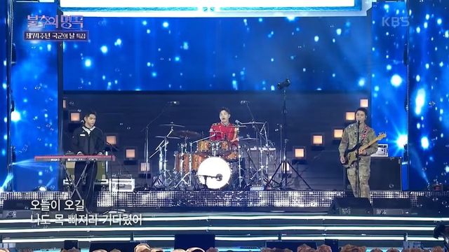 먼저 지난 2022년 10월 데이식스 영케이, 원필, 도운이 특집 무대에 올랐다. 세 사람은 카투사, 해군, 육군 군악대 소속으로 각기 다른 군복을 입은 채로 등장했다.