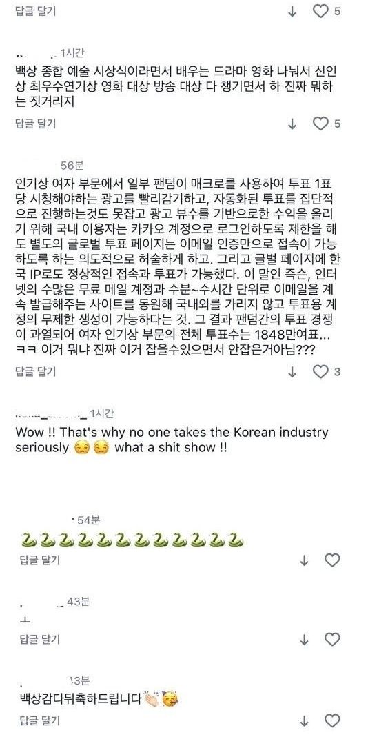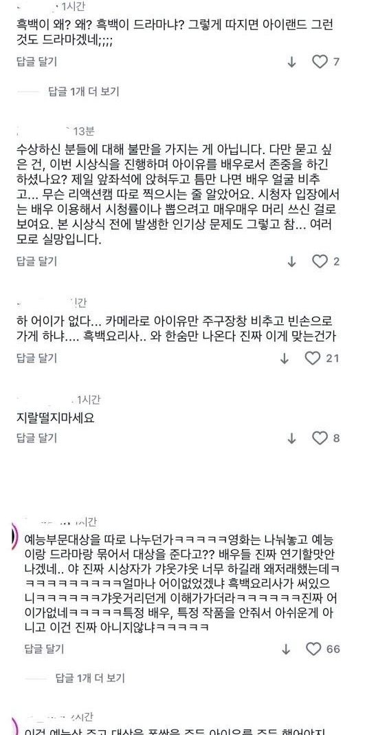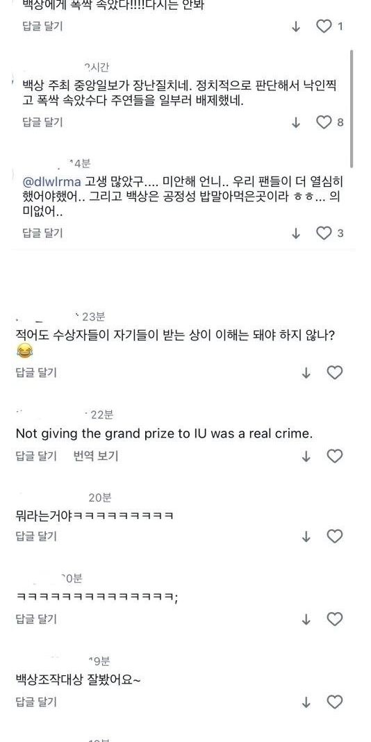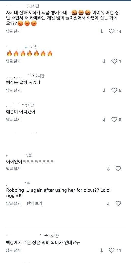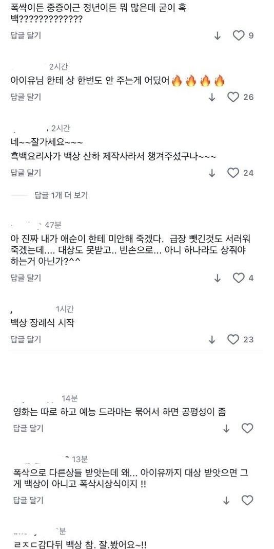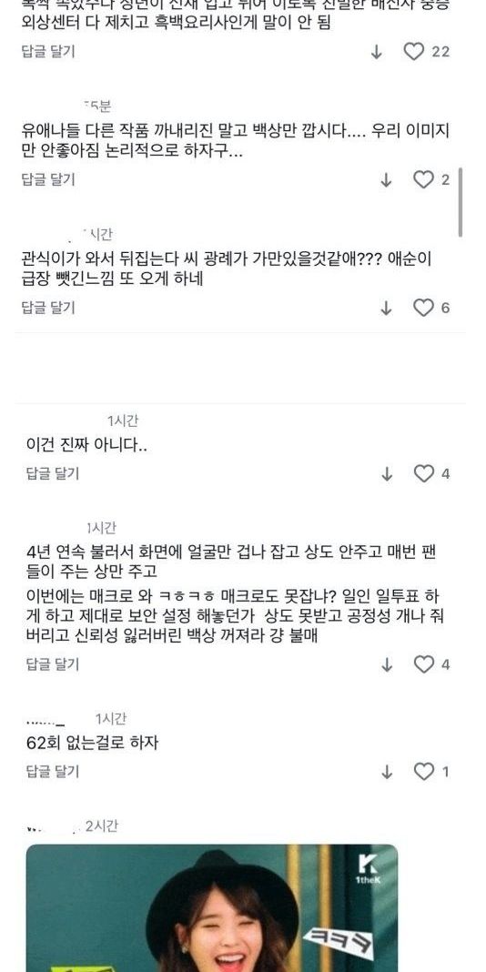 현재 아이유 팬들한테 테러 당하는 중인 백상 공계