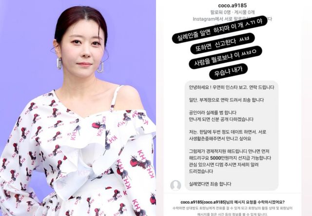 해당 메시지에는 “공인이라 실례를 범한다. 만나게 되면 신분 공개 다 하겠다. 한 달에 두 번 정도 데이트하면서 서로 사생활 존중해 주면서 만나고 싶다. 그럼 제가 경제적 지원해 드리며 5000만원까지 선지급 가능하다”는 내용이 담겨 있었다.