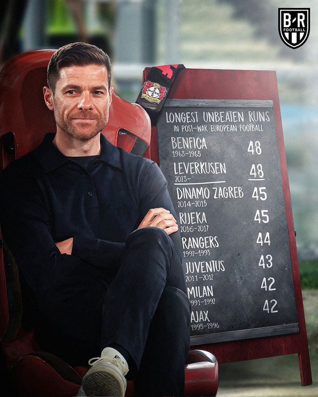 알론소 감독의 레버쿠젠이 무패 기록을 48경기로 늘리며 1960년대 벤피카의 기록과 어깨를 나란히 했다. 사진=블리처 리포트