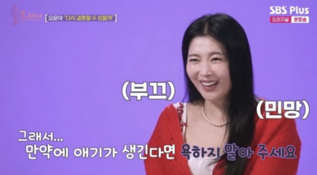 오윤아는 6일 방송된 SBS Plus, E채널 ‘솔로라서’에 출연, 건강 근황을 밝히며 재혼 생각이 있다고 솔직하게 털어놨다.