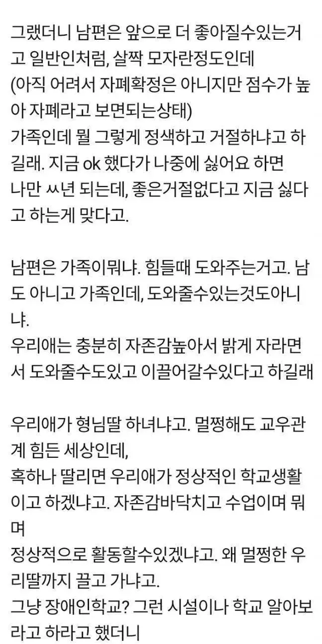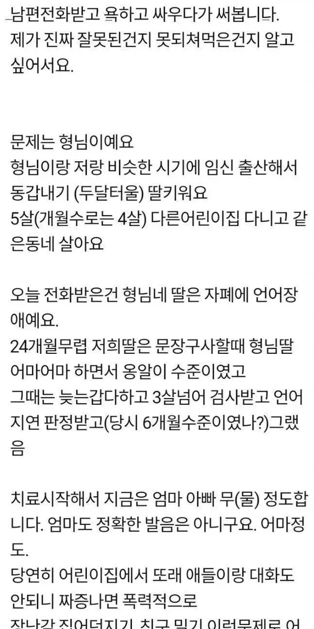 자폐아 자식 돌봐달라는 것 때문에 남편이랑 싸웠어요