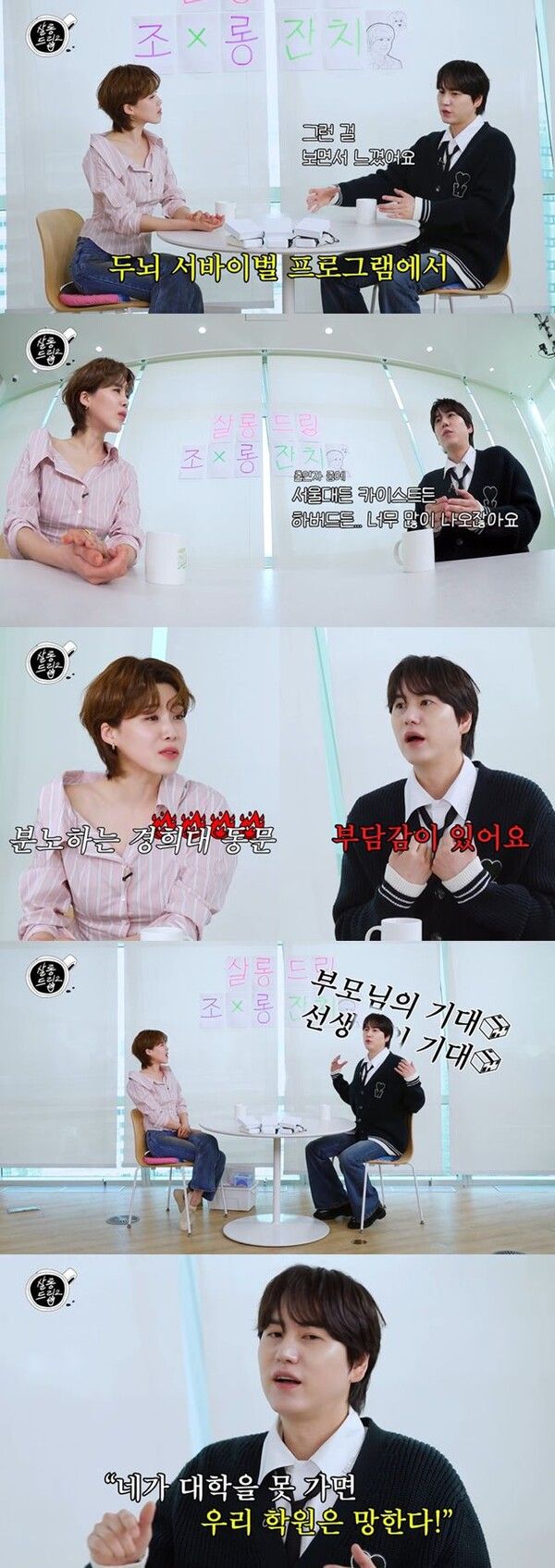 하지만 규현은 "저한테는 너무 큰 자부심이다. 사실 제가 학벌에 대한 자격지심이 있다"라고 의외의 속마음을 고백했다. 그는 "아버지가 학원을 운영하셨고 계속 6년 동안 들었던 얘기가 '네가 대학을 못 가면 우리 학원은 망한다' 이런 거에 대한 부담감이 있어서 모든 선생님과 아빠, 우리 학원을 등에 업고 공부를 했다"라며 학창 시절 느꼈던 압박감을 솔직하게 털어놨다.