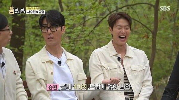 뉴시스 보도에 따르면, 차승원과 공명은 6일 방송된 SBS TV 예능프로그램 '틈만나면'에 나와 유재석·유연석과 대화를 나눴다.