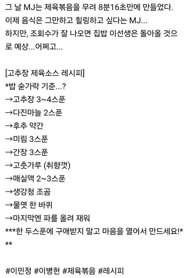 남자들은 왜 이렇게 제육을 좋아하는 거야