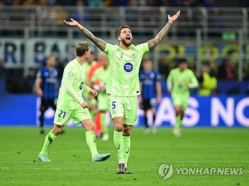 시모네 인자기 감독이 이끄는 인터 밀란은 7일(한국시간) 이탈리아 밀라노에 있는 산시로에서 열린 바르셀로나(스페인)와의 2024-2025시즌 유럽축구연맹(UEFA) 챔피언스리그 4강 2차전에서 연장 접전 끝에 다비데 프라테시의 결승 골로 4-3으로 승리했다.
