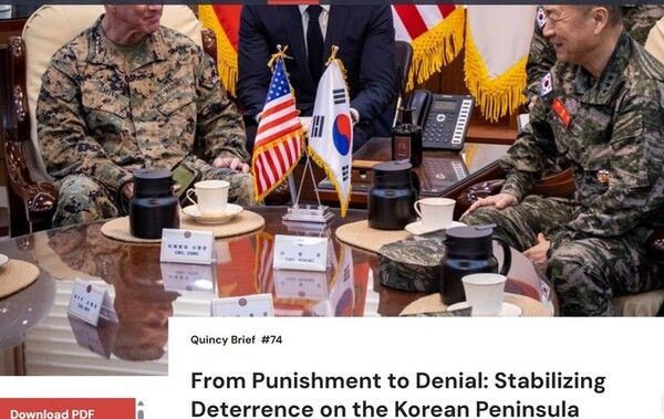 퀸시 연구소 동아시아 프로그램 제임스 파크 연구원은 한반도에 대한 한미 동맹의 억제 전략을 ‘처벌에 의한 억제’에서 벗어나 비례적으로 보복하거나 자제하는 ‘거부에 의한 억제’로 전환해야 한다고 주장했다.