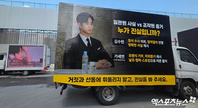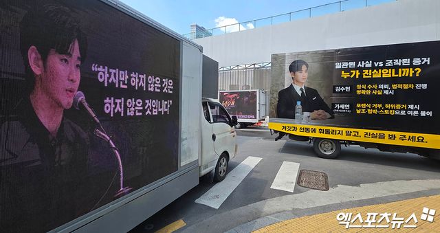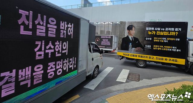 (엑스포츠뉴스 삼성, 윤현지 기자) 배우 故 김새론 유가족 측 기자회견 개최에 김수현 팬들이 지지 트럭을 보냈다.