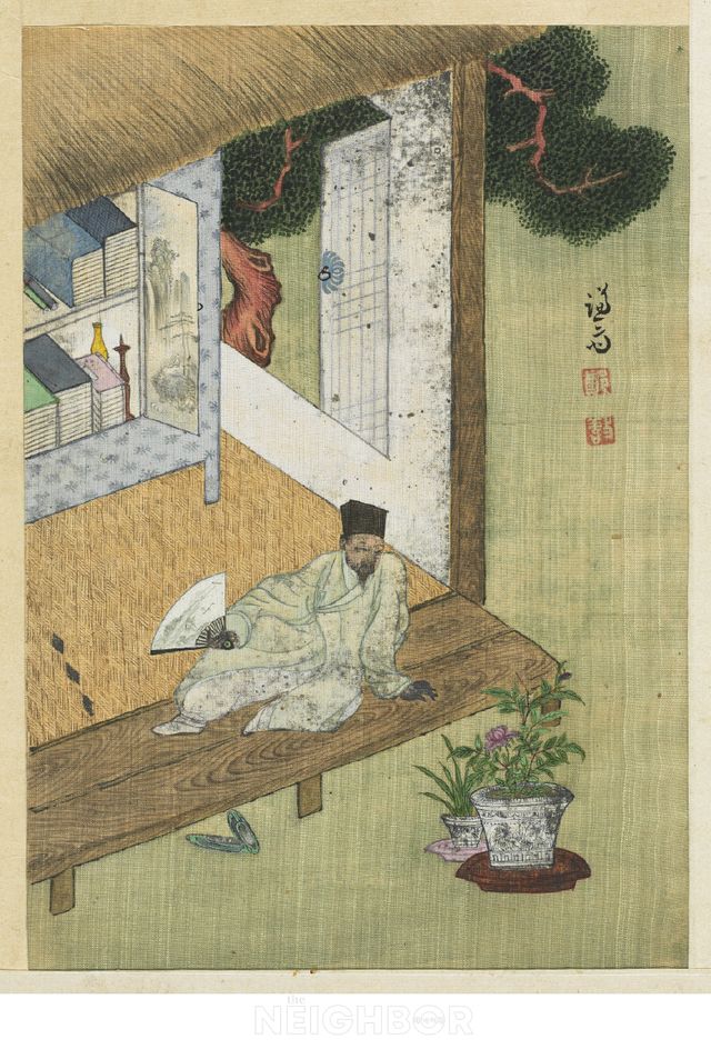 전시 2부에서 흥미로운 점은 겸재 정선이 화가가 아닌 문인의 정체성을 강조한 작품을 다수 남겼다는 점이다. 직업 화가가 높이 평가받지 못한 조선 사회에서 예술보다 학문에 무게를 두고자 한 것으로 보인다. ‘독서여가도’는 인물화 그리기를 꺼린 겸재의 자화상으로 추정된다. 툇마루에 앉아 여유를 즐기는 노 선비의 뒤로 서가 가득 책이 쌓여 있다. 인물의 부채 속 그림과 책장 문에 걸린 풍경화 모두 겸재의 작품이다.