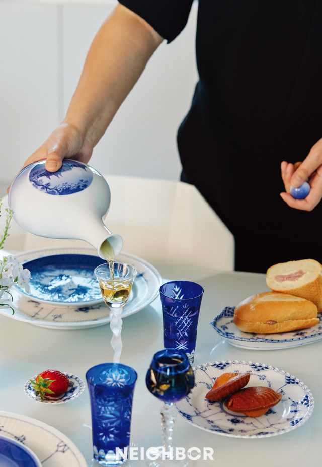 다양한 식기 브랜드를 경험했을 텐데 그중 로얄코펜하겐을 가장 선호하시나요? 제가 어렸을 때부터 어머니는 로얄코펜하겐을 갖고 싶다고 이야기하셨어요. 당시는 결혼할 때 그릇을 세트로 장만하는 문화라 오랫동안 사용하신 그릇 세트가 있었어요. 그런데 15년 전 집을 리모델링하면서 모든 가구와 식기를 다 바꾸겠다고 결심하신 거예요. 그때 코렐 같은 국민 그릇부터 패션 하우스의 테이블웨어, 국내 브랜드 그릇을 모두 정리하고 이딸라, 아라비아핀란드로 교체했어요. 다음 단계가 로얄코펜하겐이었고요. 자연스럽게 북유럽 디자인으로 이동하게 된 거죠.