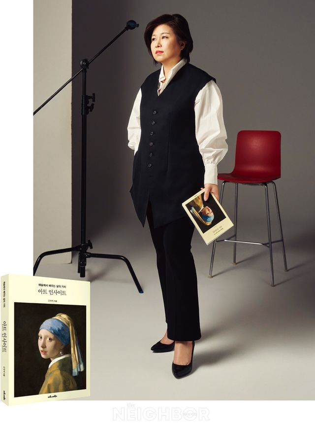 미술사를 바탕으로 한 건축, 디자인, 철학 등의 분야를 강의하는 아트 클래스와 해외 도시로 떠나는 아트 투어 프로그램, 기업과 브랜드의 아트 컨설팅 등을 기획하고 진행하는 이안아트컨설팅의 김영애 대표. 아트를 기반으로 다양한 문화와 산업, 라이프스타일을 관통하는 메시지를 폭넓은 지식과 식견, 경험으로 전하는 그녀가 올해 초 <아트 인사이트>라는 책을 펴냈다. <갤러리스트>, <나는 미술관에 간다>, <패션 앤 아트> 등에 이어 여섯 번째 출간하는 책이다. “2021년에 낸 <나는 미술관에 간다>를 보고 한 일간지에서 요청을 하셔서 약 3년간 매달 ‘아트 인사이트’라는 칼럼을 연재했어요. 동일한 타이틀을 붙인 이 책은 그 칼럼들과 다른 매체에 틈틈이 기고한 글들을 모아 엮은 것입니다. 단순히 미술 작품이나 작가를 소개하는 것을 넘어 잘 알려지지 않은 흥미로운 비하인드 스토리나 모두가 관심을 갖고 알 만한 시대상, 사회와 경제, 문화 현상과 아트를 접목한 주제를 생각했어요. 시의성에 맞는 이슈나 날씨, 계절 등과 연관 짓기도 하고요. 예를 들어 개천절 날 실리는 칼럼은 백남준 작가가 개천절을 의미하는 1,003개의 모니터로 작업한 ‘다다익선’을 언급하면서 이와 같은 맥락의 다른 작품들 이야기로 구성했어요. 이건희 컬렉션의 기증과 관련해 주요 법안으로 떠오른 물납제를 소재로 쓰기도 했고요.”
