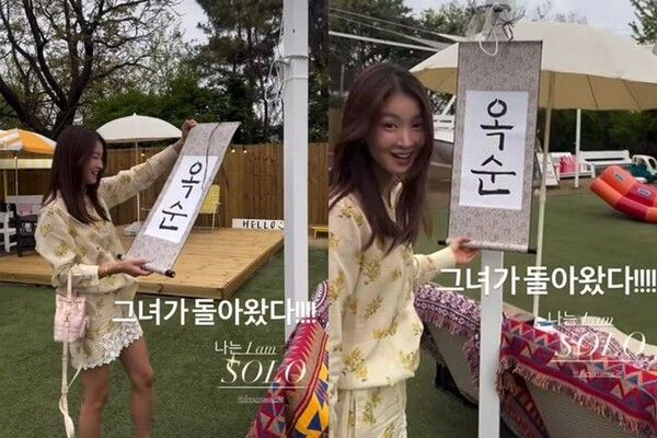 족자는 SBS Plus·ENA 예능물 '나는 솔로'를 패러디한 것으로 보인다.