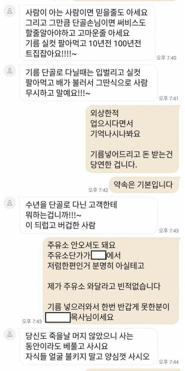 기름값 3만원 외상 목사한테 저주 받은 사람