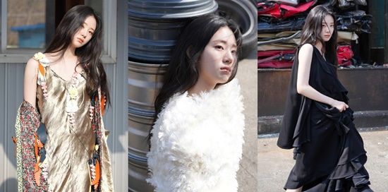 첫 번째 컷에서는 골드빛 드레스와 화려한 색을 매치해 이국적이고 몽환적인 이미지를 연출했고, 두 번째 컷에서는 부드러운 질감의 상의로 청초하면서도 순수한 느낌을 극대화했다.