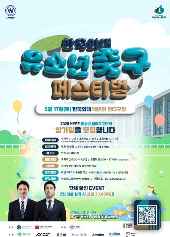 [풋볼리스트] 김정용 기자= 한국외국어대학교에서 축구를 통한 문화체험과 언어학습 기회를 제공하는 ‘한국외대(HUFS) 유스 풋볼 페스타(HYFF)’가 개최된다.