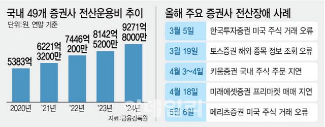 증권사들은 매년 전산운용비를 늘리며 대응하고 있다. 금융감독원에 따르면 국내 증권사 49곳의 전산운용비는 2020년 말 5383억원 규모에서 지난해 말 9272억원 규모로 늘어났다.