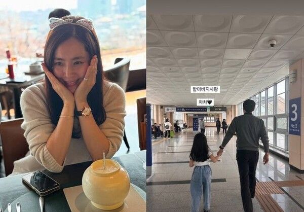 뉴시스 보도에 따르면, 한채아는 7일 소셜미디어에 "할아버지 사랑, 차차♥"라고 적고 사진을 올렸다.