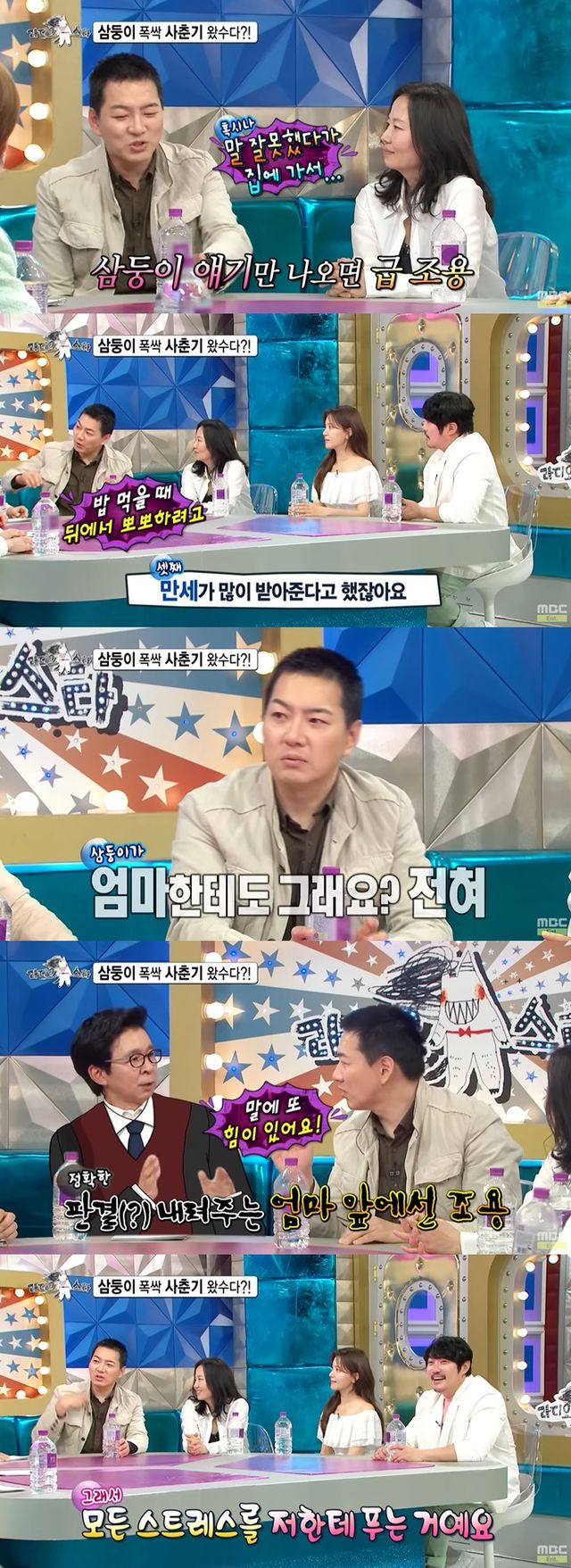 김구라가 "엄마한테는 안 그러냐"고 묻자, 송일국은 "엄마한테는 안 그런다. 모든 스트레스를 저한테 푼다"고 한숨을 내쉬었다.