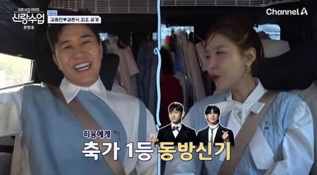 김종민은 신지와 코요태 일정을 위해 행사장으로 이동 중 호화스러웠던 김종민의 결혼식 축가로 이야기를 나눴다. 신지는 “히융 씨에게 1등은 동방신기다”라고 김종민의 아내가 흡족해했다고 밝혔다.