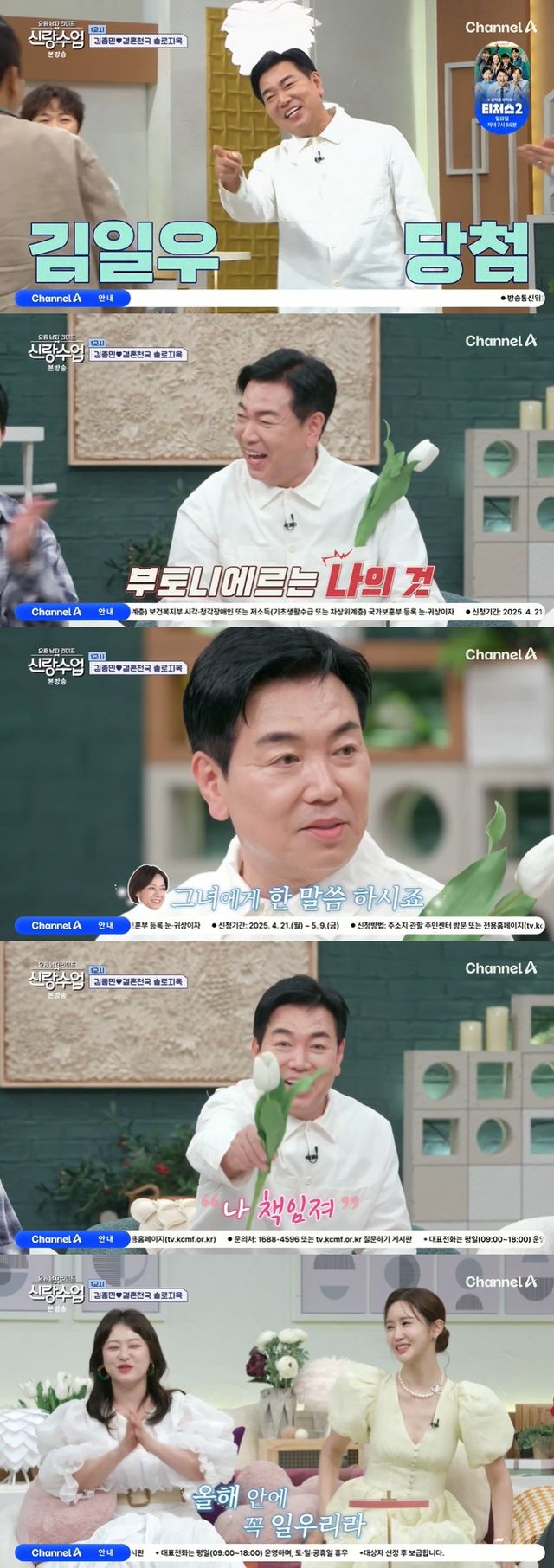 (엑스포츠뉴스 김보민 기자) 김일우가 김종민이 던진 꽃다발을 받고 박선영을 향한 영상 편지를 남겼다.