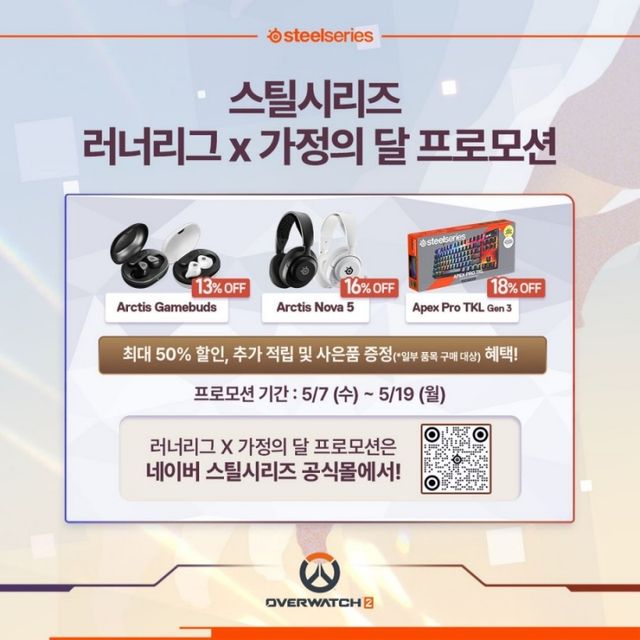 세계 최초 게이밍 기어 브랜드 스틸시리즈(SteelSeries, CEO 에티샴 라바니)가 오버워치러너리그 시즌 후원을 기념해 가정의 달 프로모션을 실시한다.