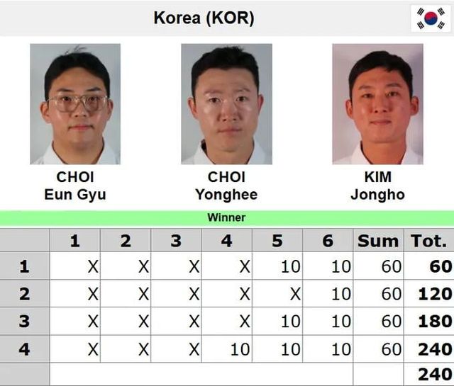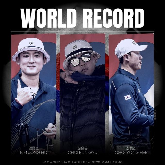 최은규, 최용희, 김종호 선수로 이루어진 남자 컴파운드 대표팀이 단체전 24발의 화살을 모두 10점에 꽃아넣으며 세계 신기록을 세움
