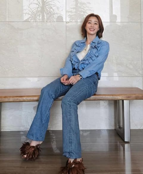 사진 속 김성령은 청색 블라우스와 청바지를 입고 청순한 매력을 발산했다.