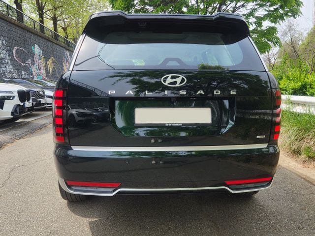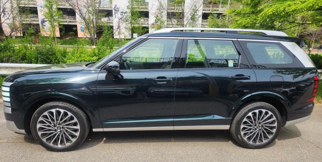 외관은 팰리세이드의 새 얼굴 그대로다. 입체적인 크롬 라디에이터 그릴은 캘리그라피 트림의 경우 일반 트림과 모양을 달리한다. 그릴과 직선으로 이어지는 전면 램프, 중간에 숨은 주간주행등으로 전면부의 강인하고 웅장한 존재감을 배가했다. 앞쪽 램프와 같은 디자인으로 이어지는 후면 램프도 눈에 띈다. 여기에 리어 스포일러까지 더하니 직선적이면서도 유려한 실루엣이 완성됐다.