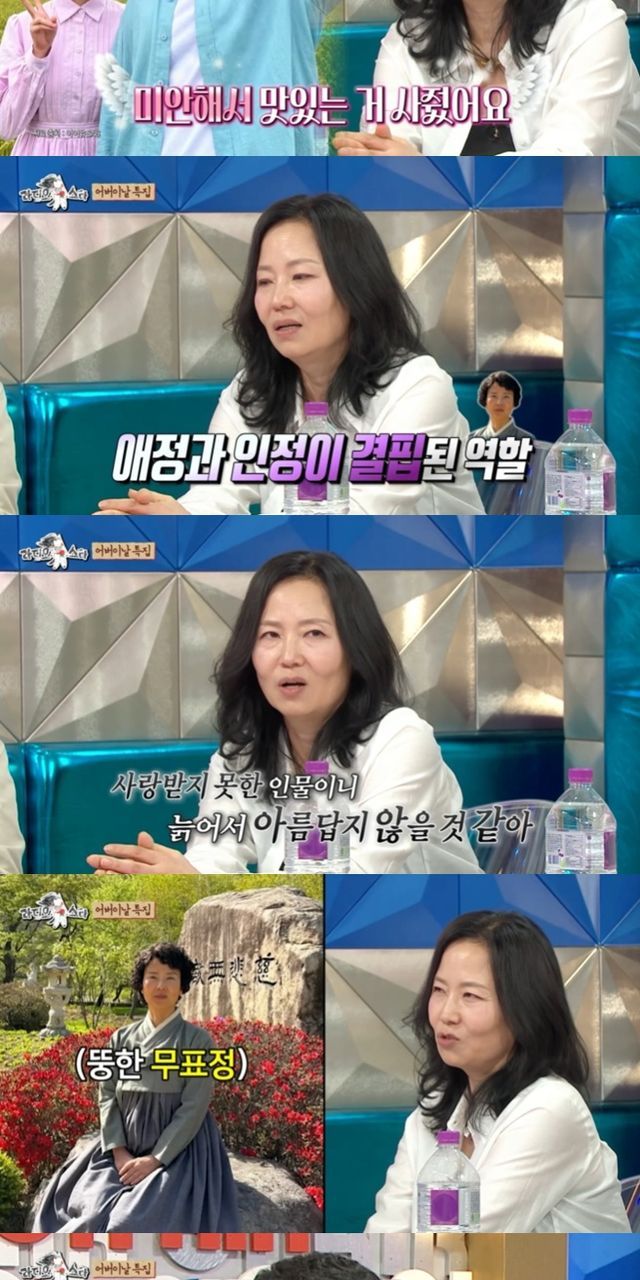 확신의 엄마상이라는 말에는 "남편에게도 사랑 못 받고 시어머니에게 구박받고 내 자식이 알아주는 것도 아니고 인정을 받지 못하는 사람이다. 그런 사람이 늙었을 때 표정이 어떨까 했는데 결코 아름답거나 고울 거 같지 않을 것 같아 현장에서 뚱하게 있었다"라고 밝혔다.