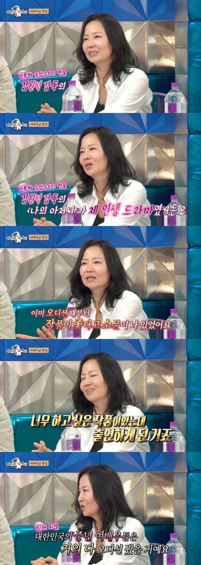 넷플릭스 '폭싹 속았수다'에서 양관식(박보검 분) 엄마로 분한 오민애는 "김원석 감독님의 '나의 아저씨'가 내 인생 드라마여서 하게 됐다. 이미 오디션 때부터 워낙 작품이 좋다고 소문이 나 있었다. 아마 대한민국의 중년 여배우들은 거의 대부분 오디션을 봤을 거다"라고 말했다.