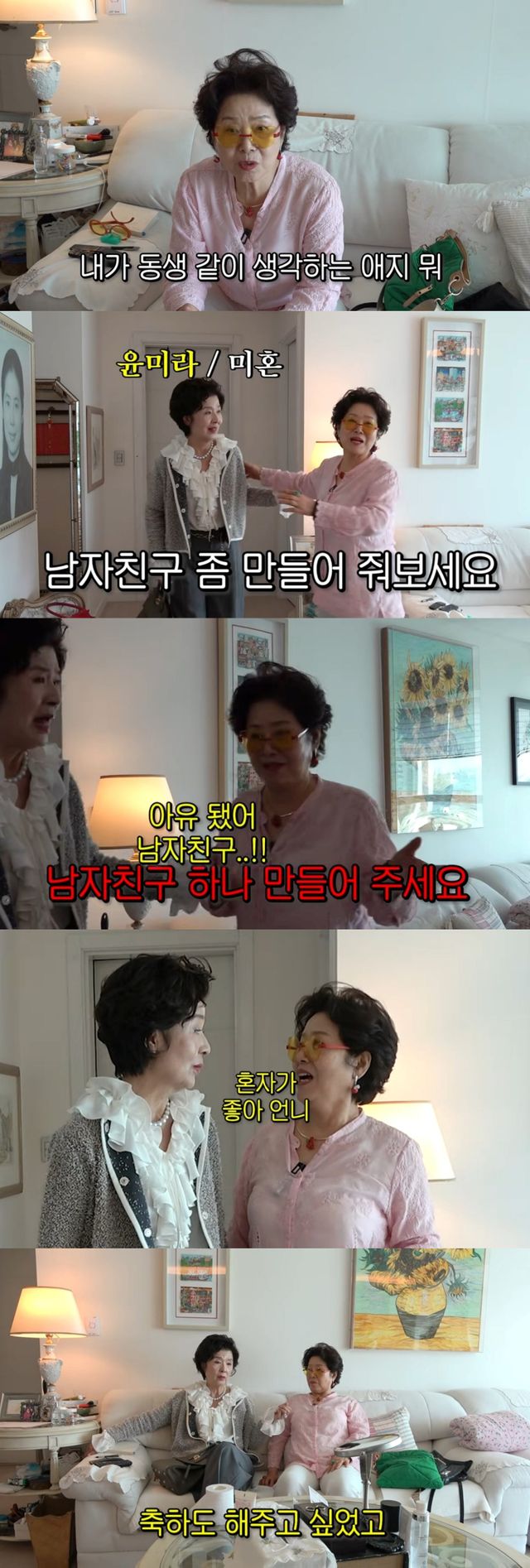 그런가 하면, 그동안 예능에 잘 출연하지 않았던 양미라는 "언니가 이 연세에 유튜브를 시작해서 축하도 해주고 싶었고 이번 기회로 여러분들한테 인사도 드리겠구나 싶었다"고 게스트로 출연한 이유를 밝혔다.