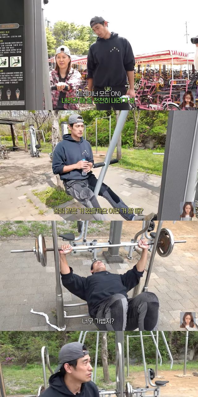 해당 영상에서 자전거 데이트를 즐긴 두 사람은 귀가 전 공원 한 켠에 위치한 야외 운동 기구로 향했다.