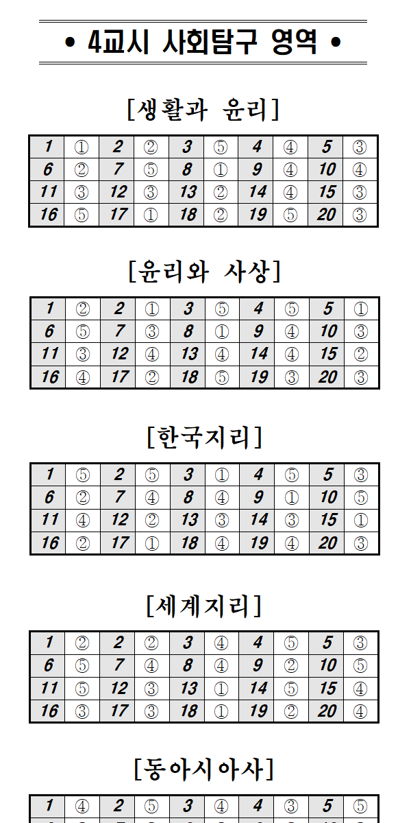 2025년 5월 전국연합학력평가(학평), 모의평가(5월 모평) 사회(사탐), 과학탐구(과탐) 영역 정답이 공개됐다.