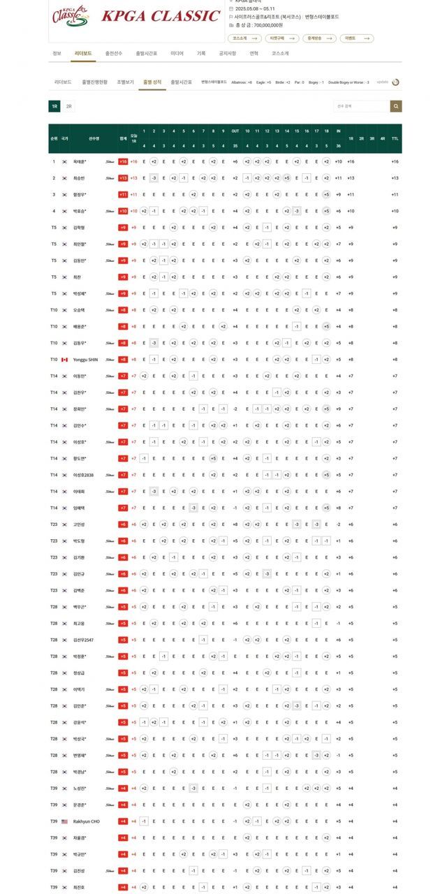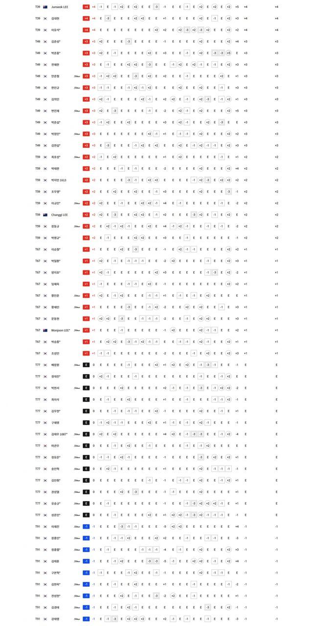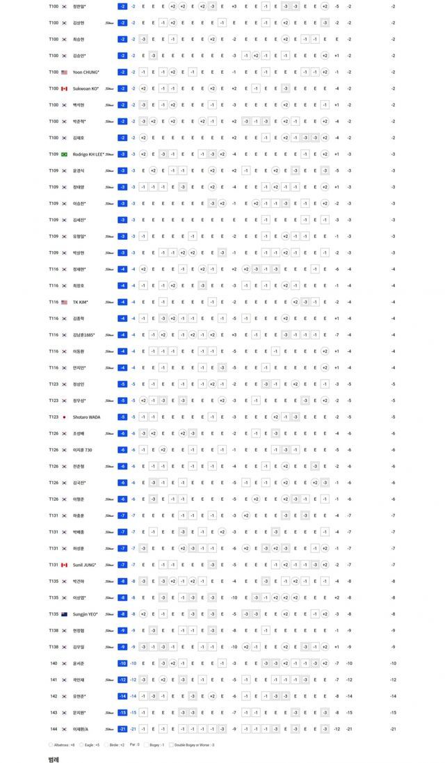 1.옥태훈 +16, 2.최승빈 +13, 3.함정우 +11, 4.박효승 +10, T5.김학형-최민철-김동민-최찬-박성제 +9, T10.오승택-배용준-김동우-신용구 +8, T14.이동민-김찬우-장희민-김민수-이성호-황도연-이성호2838-이태희-임예택 +7, T23.김민규-김기환-김백준 +6, T28.정상급-김민준-강윤석-박성국-박경남 +5, T39.문경준-조락현-차율겸-박규민-최진호-이준석-김대현 +4, T49.김준성-박준홍-전재한-변진재-박정민 +3, T59.최호성-박지민1613-조우영-이규민 +2, T67.양지호-임채욱-문동현-이원준 +1, T77.김우현-송민혁-김민휘-유송규 E, T91.김태훈-김현욱-전성현-김경태-강태영 -1, T100.정하밀-김상현-최승현-백석현 -2, T109.박상현 -3, T123.와다 쇼타로-전준형-이형준 -6, T138.현정협 -9.