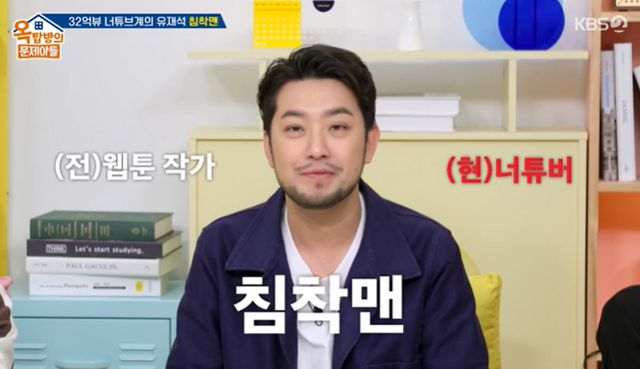 김숙은 8일 방송된 KBS2 예능프로그램 ‘옥탑방의 문제아들’(이하 ‘옥문아’)에서 침착맨이 “전 웹툰작가이자 현 유튜버”라고 소개를 하자 “솔직히 배우가 들어오는 줄 알았다”고 말했다.