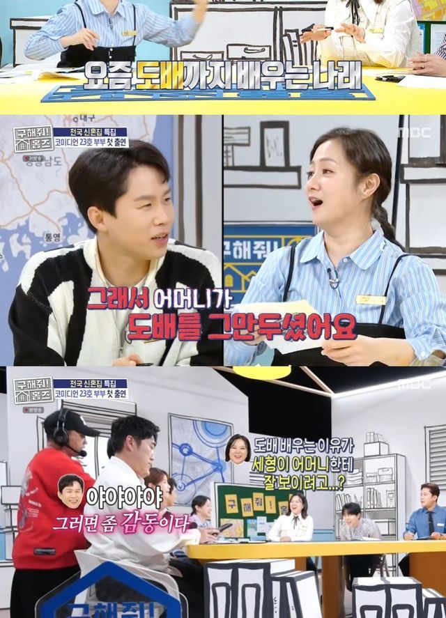박나래는 "내가 그래서 고부간에 같이 도배 다니면 좋을 것 같다고 (했다)"고 덧붙였고, 김해준은 "이런 식으로 가다가 만나게 된다고 생각한다"며 코미디언 24호 부부를 예견해 눈길을 끌었다.