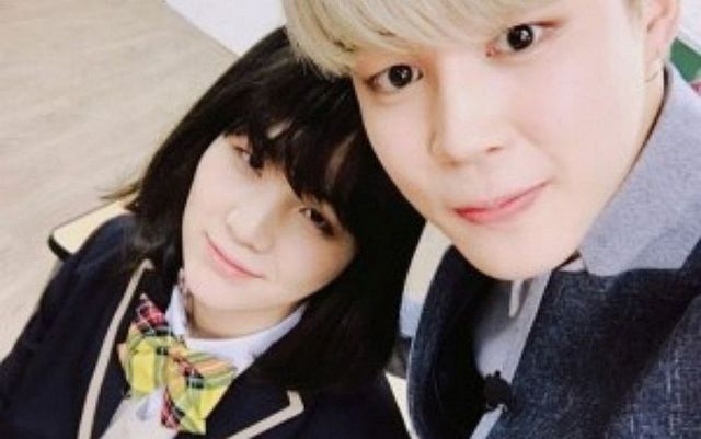 그룹 방탄소년단(BTS) 지민은 방탄소년단 공식 채널에 ‘민윤지’라는 글과 함께 같은 그룹 멤버 슈가의 여장한 모습을 공개했다. 사진에는 교복을 입고 짧은 단발을 한 슈가의 모습이 담겼다.