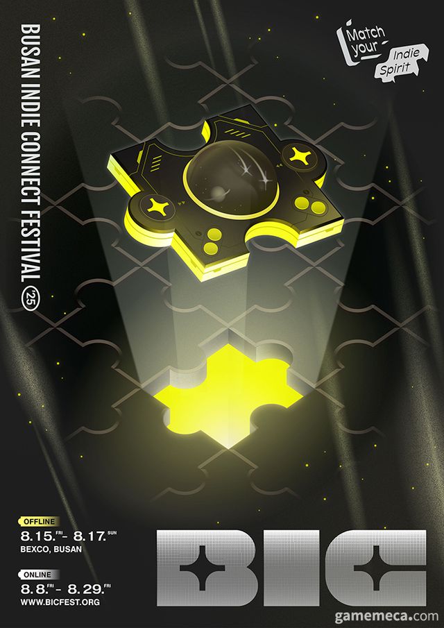 슬로건 '매치 유어 인디 스피릿(Match your Indie Spirit)’ 아래 인디게임과의 운명적인 연결을 표현했다. 퍼즐판 위에 서서히 자리 잡는 우주선 모양 퍼즐 조각은 개발자와 게이머, 인디게임과 참관객이 서로를 향해 자연스럽게 이끌리는 '매칭의 순간'을 은유한다.