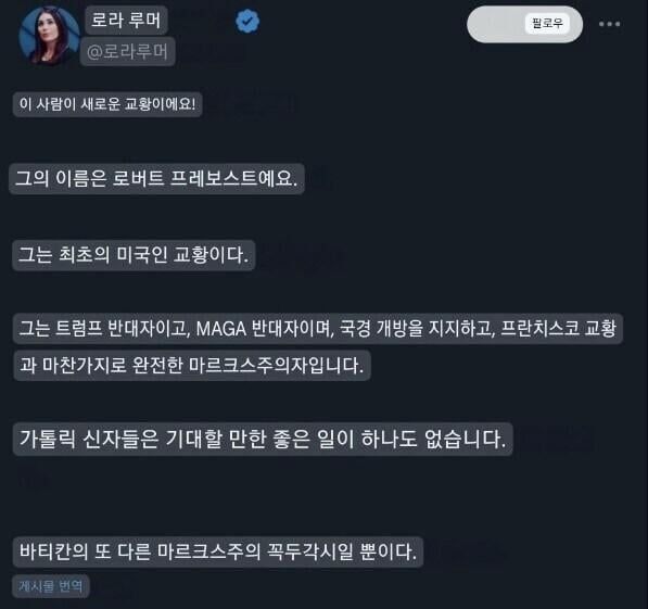 신임교황은 프란치스코 교황같은 안티 마가 빨갱이라고 함
