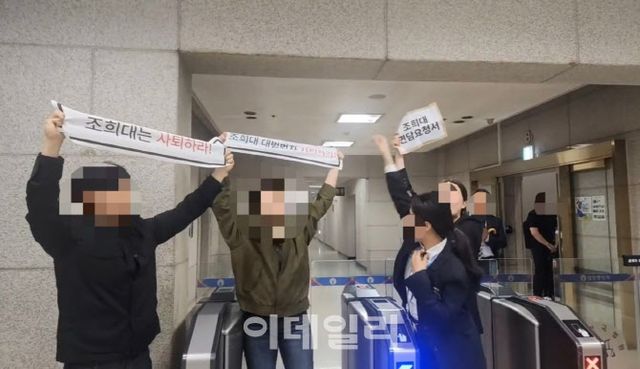 이들은 대법원에서 조희대 대법원장과 면담을 요구하며 피켓을 들고 구호를 외쳤다. 다만 대법원 관계자에게 가로막혔다.