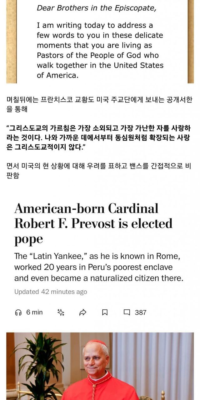 새로운 교황 레오 14세 트럼프 정부 비판 논란 총정리