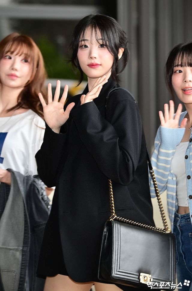 QWER 히나가 출국장으로 향하고 있다.