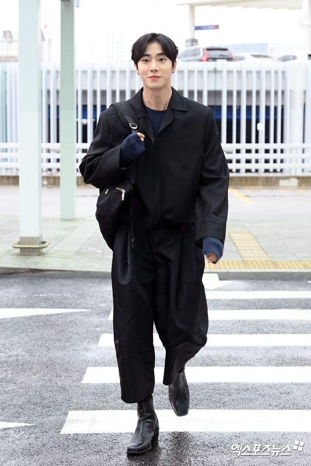 추영우는 9일 오전 해외 일정 참석 차 인천국제공항을 통해 일본 도쿄로 출국했다. 이날 추영우는 블랙 재킷과 와이드 팬츠, 앵클부츠로 시크한 무드를 연출했다.