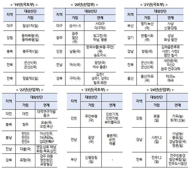 이에 정부는 노후화된 산업단지의 지속 가능성을 확보하기 위해서 ’19년부터 6년간 26개의 경쟁력강화사업지구를 지정하고, 국토부, 산업부 등 8개 중앙부처의 사업과 지자체 사업을 연계하여 디지털‧저탄소화 촉진, 근로‧정주여건 개선, 문화공간 확충을 적극 지원해오고 있다.