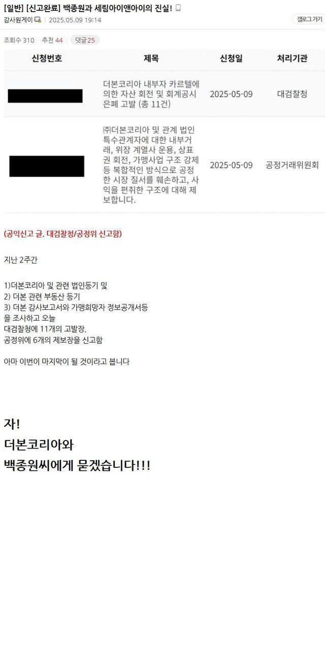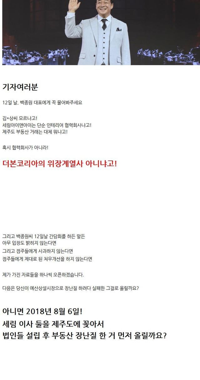 이거 쓴 감사원게이가 농약통게이와 더불어 백종원 파묘 네임드인데...