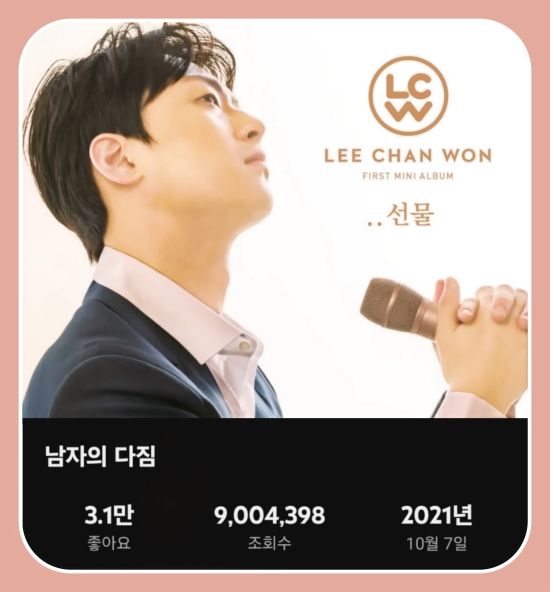 지난 2021년 10월 이찬원의 공식 유튜브 채널(애칭 또튜브)를 통해 공개된 '남자의 다짐' 음원 영상이 누적 조회수 900만 스트리밍을 넘어섰다.