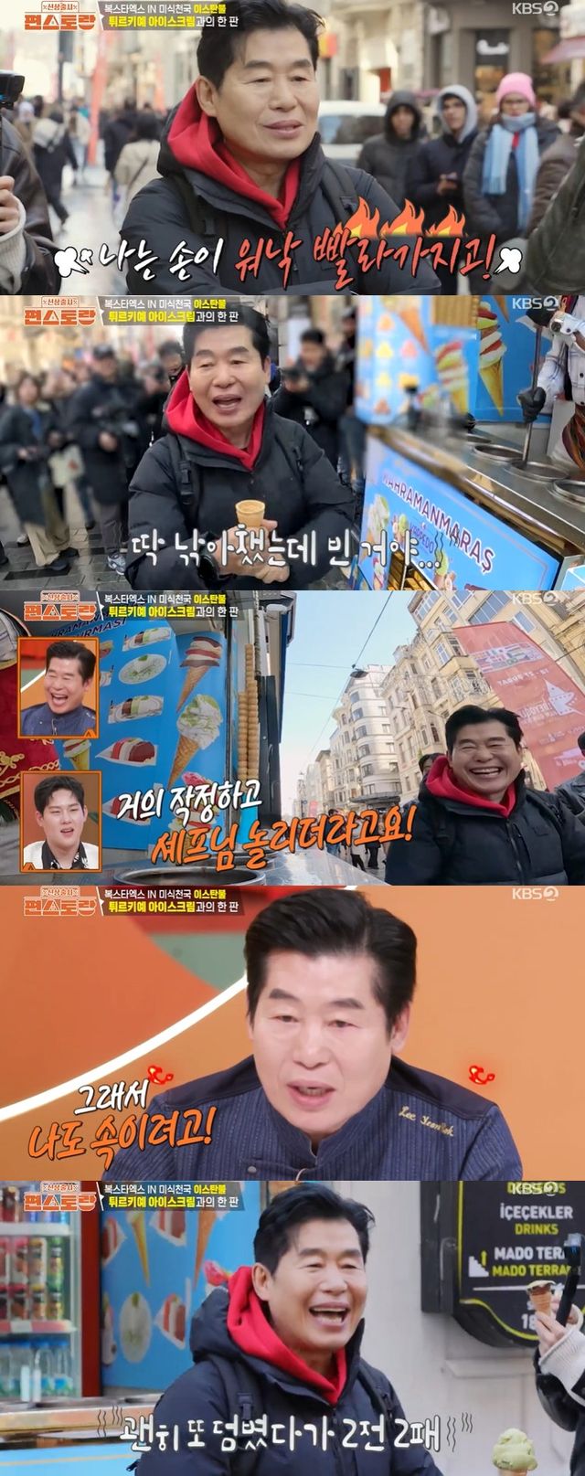 이연복의 복수는 다름 아닌 계산할 때 이뤄졌다. 이연복은 튀르키예 아이스크림과 비슷한 손놀림으로 지폐를 건넸지만 가게 사장님은 아이스크림을 더 주는 척 지폐를 빼앗아 가 이연복은 2전 2패를 기록하고 말았다.