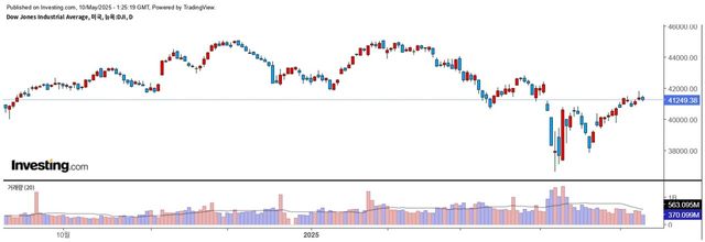 9일(현지시간) 뉴욕증시는 미중 고위급 무역협상을 앞두고 관망세가 짙게 깔리며 보합권 등락을 반복한 끝에 혼조세로 마감했다. 다우지수는 0.29% 하락한 41,249.38포인트, S&P500지수는 0.07% 내린 5,659.91포인트를 기록했다. 나스닥지수는 0.78포인트 오르며 사실상 보합권에 머물렀다.
