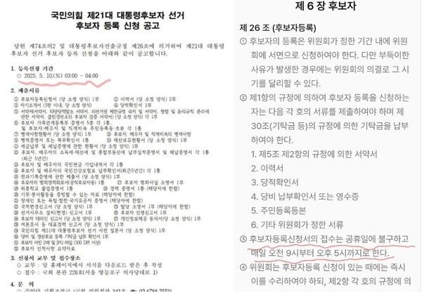 이어 "국민의힘 당규에는 오전 9시부터 오후 5시까지로 신청시간이 규정돼 있다며 북한도 이런식으로 안한다"고 지적했다.